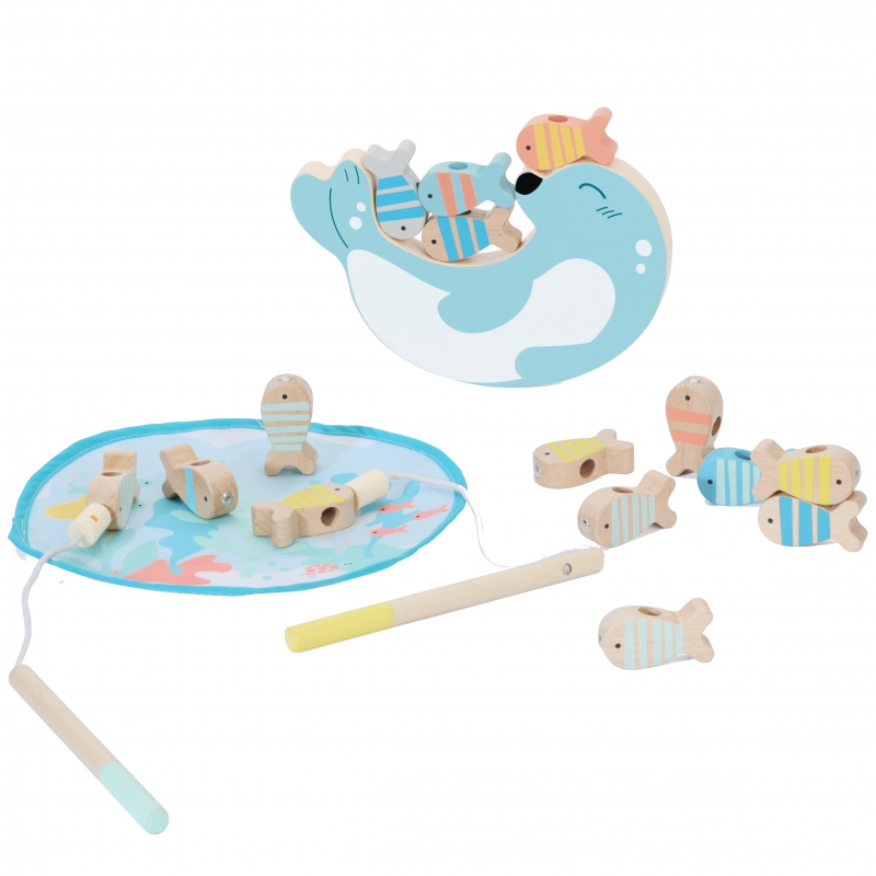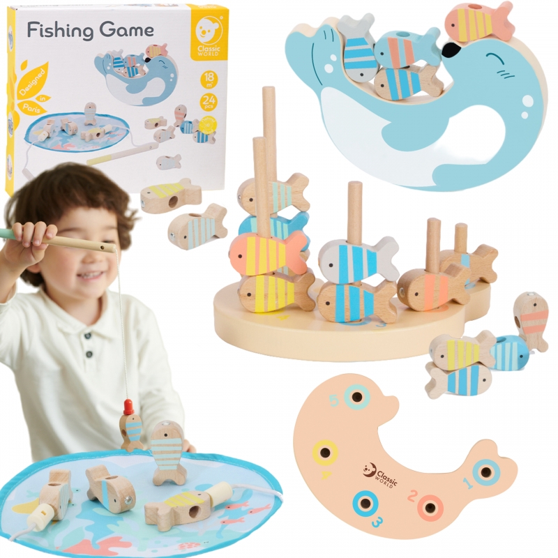 CLASSIC WORLD Drewniana Gra Łowienie Rybek Zestaw 2 Wędki 24 el.