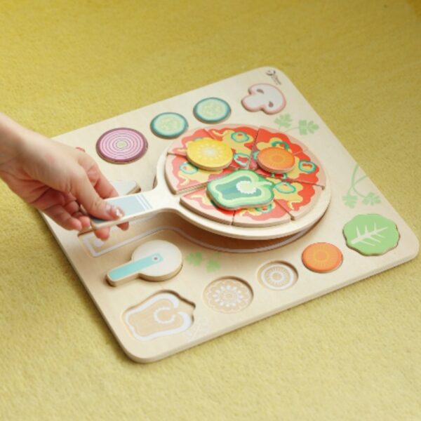 Witamy w świecie smaków i kreatywnej zabawy! Drewniane puzzle „Pizza Puzzle Board” to idealna zabawka dla małych kucharzy. Dzięki kolorowym dodatkom dzieci mogą tworzyć własne kompozycje pizzy, rozwijając przy tym swoją wyobraźnię, zdolności manualne i koordynację wzrokowo-ruchową.