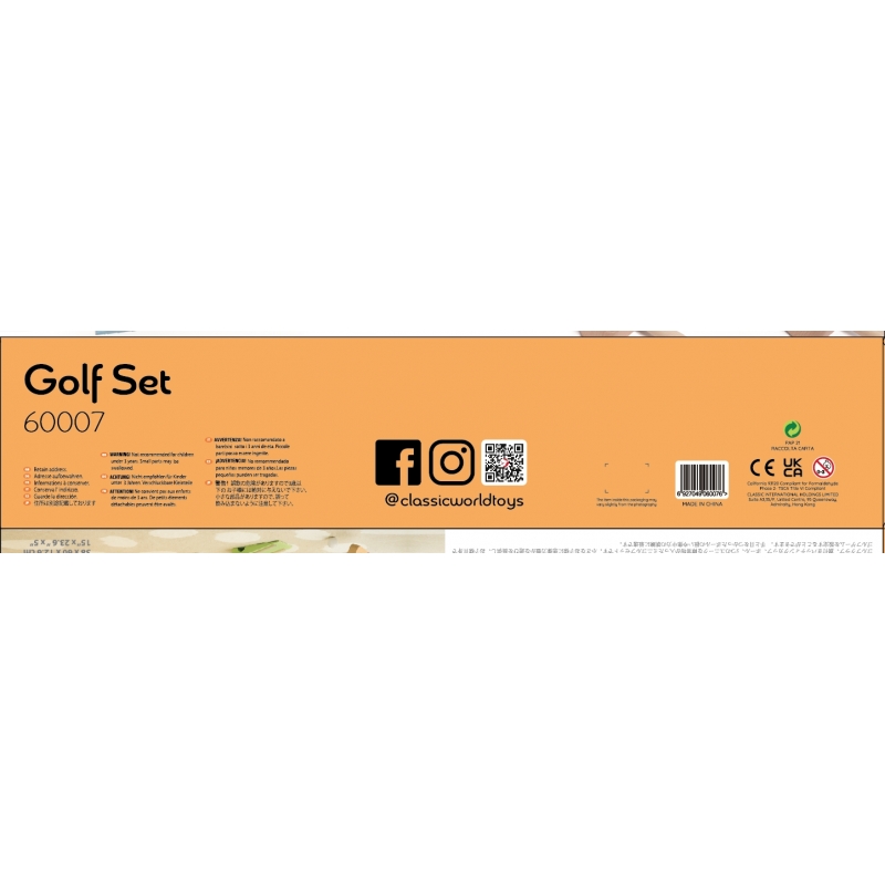 Drewniany Zestaw do Golfa od marki CLASSIC WORLD to klasyczna gra. Idealny sposób na spędzanie aktywnie wolnego czasu, który ćwiczy koncentrację, refleks, zręczność i precyzję. Gra w 100% wykonana z drewna nietoksycznego i odpornego na warunki atmosferyczne. Świetna zabawa dla całej rodziny. Łatwy do rozstawienia dołek pozwala na grę zarówno w ogrodzie jak i w domu. Ten zestaw do minigolfa zawiera kije golfowe, kubki z flagami, piłki i 5 unikalnych przeszkód. Zapewni małym dzieciom godziny pomysłowej zabawy, a one będą mogły tworzyć własne gry w golfa. Świetne do koordynacji ręka-oko i ćwiczeń koncentracji.