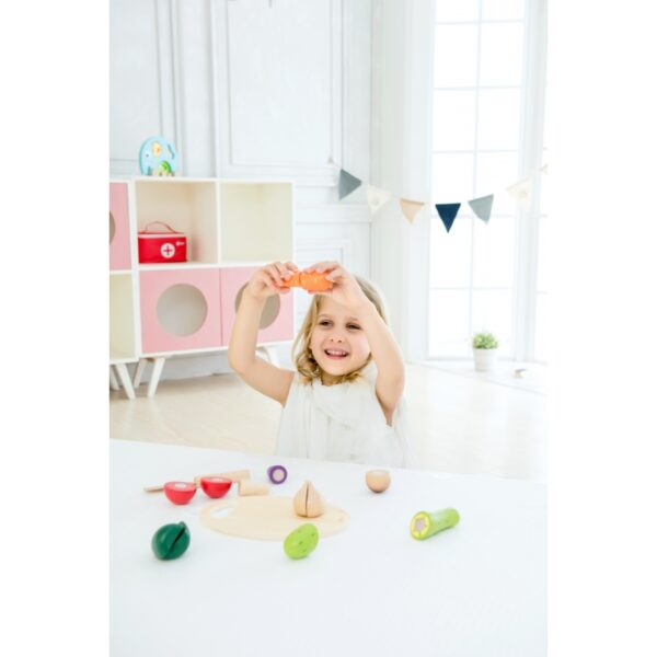 - – Zestaw kolorowych warzyw to świetne dopełnienie zabawy dla małych kucharzy, którzy uwielbiają bawić się w dom, czy gotowanie.