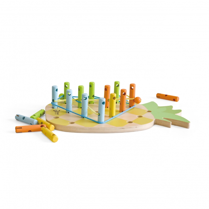 - – drewnianą tabliczkę w kształcie ananasa z dziurkami.