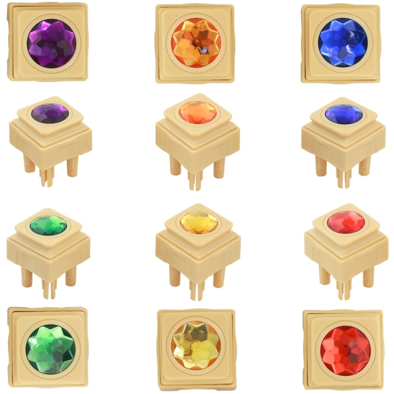 Komplet 72 diamentowych klocków do ozdabiania tablic naukowo-kreatywnych marki Masterkidz. Klocki występują w 6 różnych kolorach, po 12 sztuk z każdego rodzaju. Umieszczone są w specjalnych płytkach z kołkami, które pozwalają na bardzo łatwy i szybki montaż, lub demontaż z tablicy.