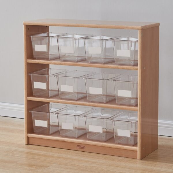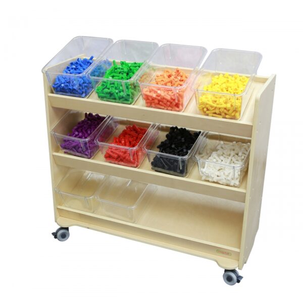 Pojemniki przystosowane są do użytkowanie w połączeniu ze specjalnym regałem (ME13095) Masterkidz, która pozwala na umieszczenie wszystkich 12 pojemników na przeznaczonych do tego półkach. Tym sposobem dziecko ma wszystkie akcesoria w zasięgu ręki, a przenoszenie zabawy w inne miejsca jest lekkie i łatwe.