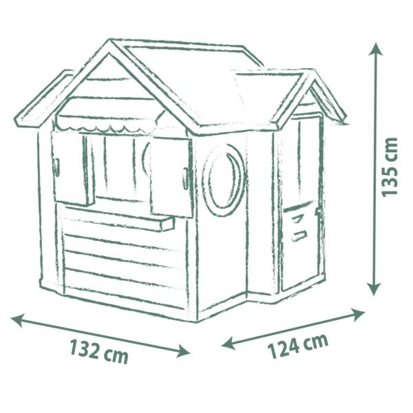 - – Bezpieczny i trwały materiał: Wykonany w 64% z plastiku pochodzącego z recyklingu, domek posiada powłokę ANTI-UV, która chroni kolory przed blaknięciem.