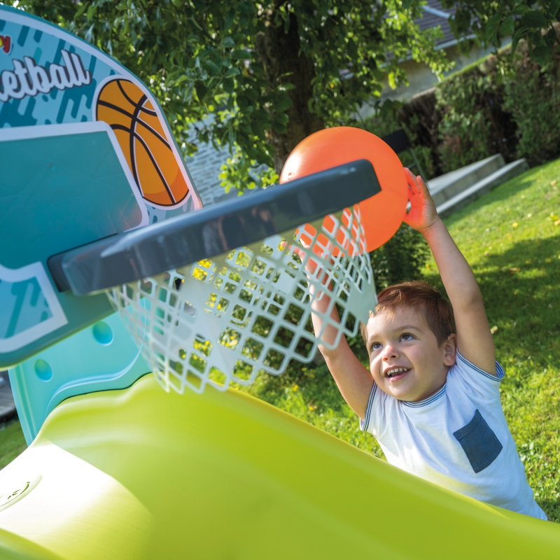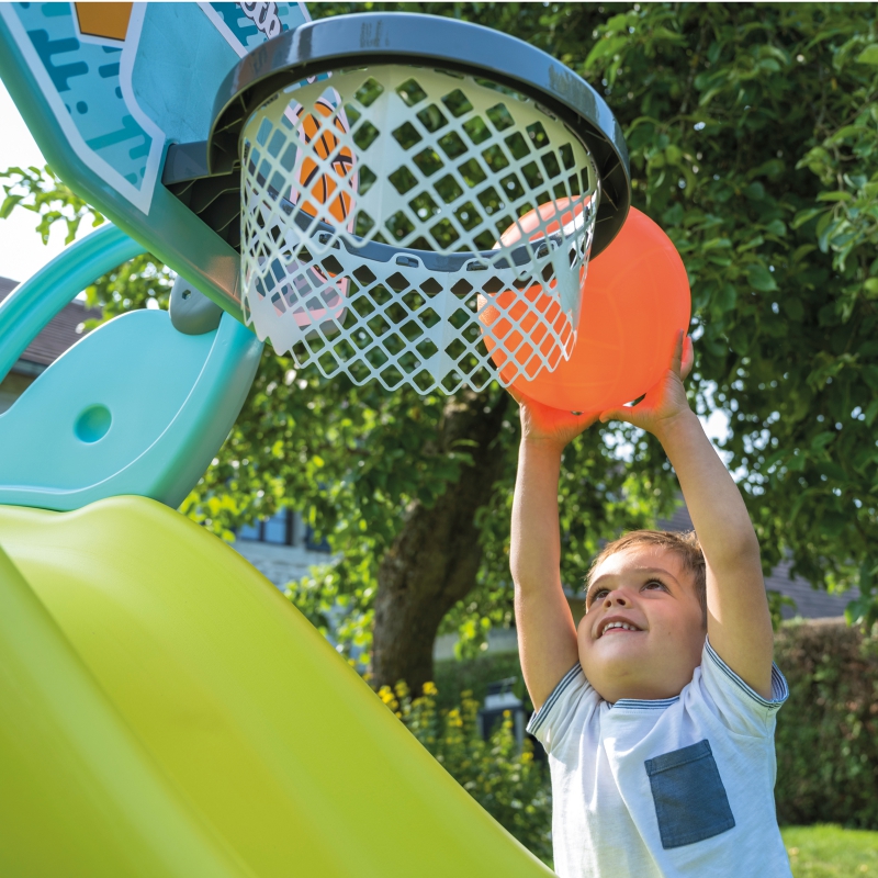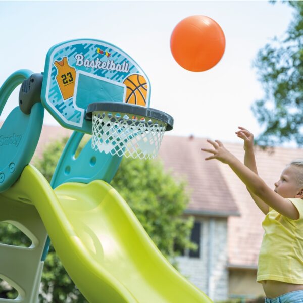 Kosz do Koszykówki od marki Smoby to sportowa zabawka dla dzieci powyżej 3 lat. Rzut piłką do kosza zapewnia wiele frajdy i stanowi świetny trening. Kosz można przymocować do zjeżdżalni Megagliss (820200), zjeżdżalni Smoby XL (820302). Możesz go umieścić zarówno na boku zjeżdżalni, jak i na jej końcu, co czyni zabawę bardziej urozmaiconą i ciekawą. Jeśli nie masz zjeżdżalni Smoby, nie ma problemu! Kosz możesz także zawiesić na ścianie. W zestawie otrzymasz elementy montażowe, niezbędne do przymocowania obręczy.