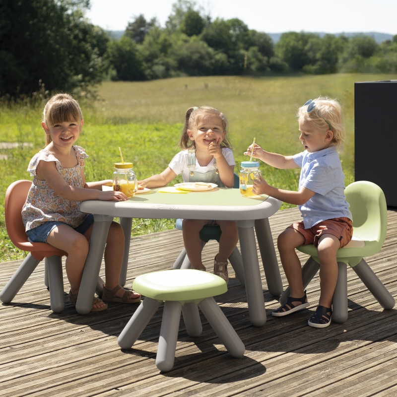 Stabilne krzesełko z oparciem z czterema nogami stanie się praktycznym i ładnym mebelkiem w dziecięcym pokoju, czy w domowym ogrodzie. W kolekcji występują różne kolory, dzięki czemu można tworzyć dowolne konfiguracje, pasujące do otoczenia.