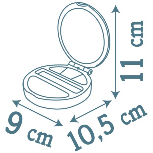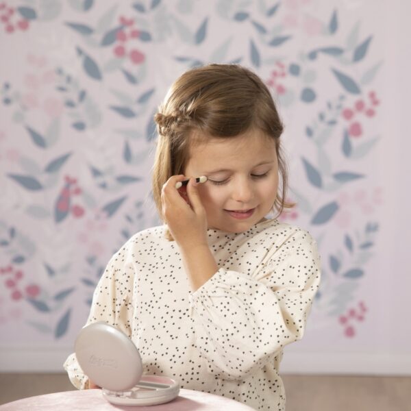 - – urocza puderniczka z rozświetlaczem, cieniami do powiek i pędzelkiem,