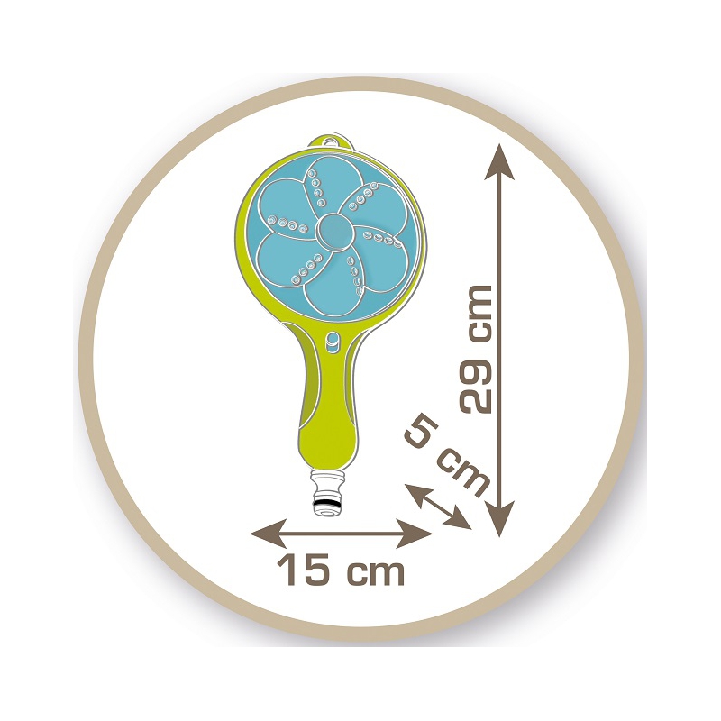 - – po podłączeniu węża ogrodowego można umieścić na podłodze/ziemi, bawić się trzymając go w ręku lub montując do domku ogrodowego,