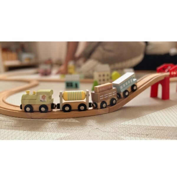 Wszyscy na pokład pociągu ekspresowego. Twoje dziecko będzie się świetnie bawić z tym 12-częściowym zestawem magnetycznych pociągów i wagonów firmy Tooky Toy. Każdy zestaw zawiera 3 pociągi i 9 wagonów, które łączą się za pomocą magnesów. Niezależnie od tego, czy przewozisz węgiel, benzynę czy ludzi, ten zestaw pociągów zachęci dzieci do zabawy. Gdy nie jest używany, zestaw można starannie zapakować i wyeksponować w drewnianym pojemniku, w którym jest zapakowany. Każdy drewniany zestaw pociągów i wagonów firmy Tooky Toy jest wykonany z drewna i wykończony z najwyższą jakością.