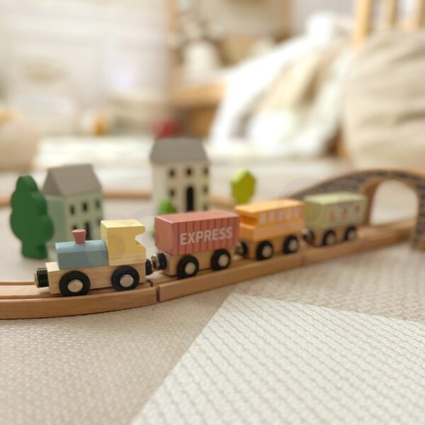 - – zabawka składa się z 12 części zestawu(3 pociągi i 9 wagoników)