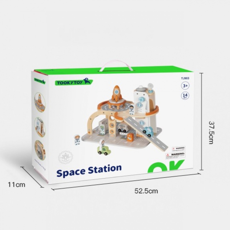 Ten wyjątkowy drewniany zestaw to prawdziwa gratka dla małych odkrywców kosmosu! Stacja kosmiczna z wieloma poziomami, rampami, lądowiskiem i windą zapewnia fascynującą zabawę na długie godziny. W komplecie znajdziesz nie tylko stację, ale także pojazdy, rakietę, ufoludka i astronautów – wszystko wykonane z dbałością o detale i bezpieczeństwo dzieci