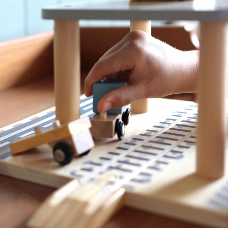 - – Dźwig wieżowy – Szczegółowy i ruchowy dźwig wieżowy, który dodaje autentyczności zabawie. Ramię dźwigu umożliwia podnoszenie i przemieszczanie ładunku za pomocą magnesów.