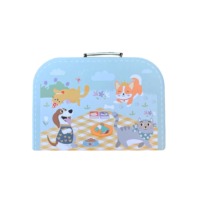 - – Zestaw zapakowany w śliczną, błękitną walizkę z rączką i motywem zwierzątek – łatwy do przenoszenia i przechowywania