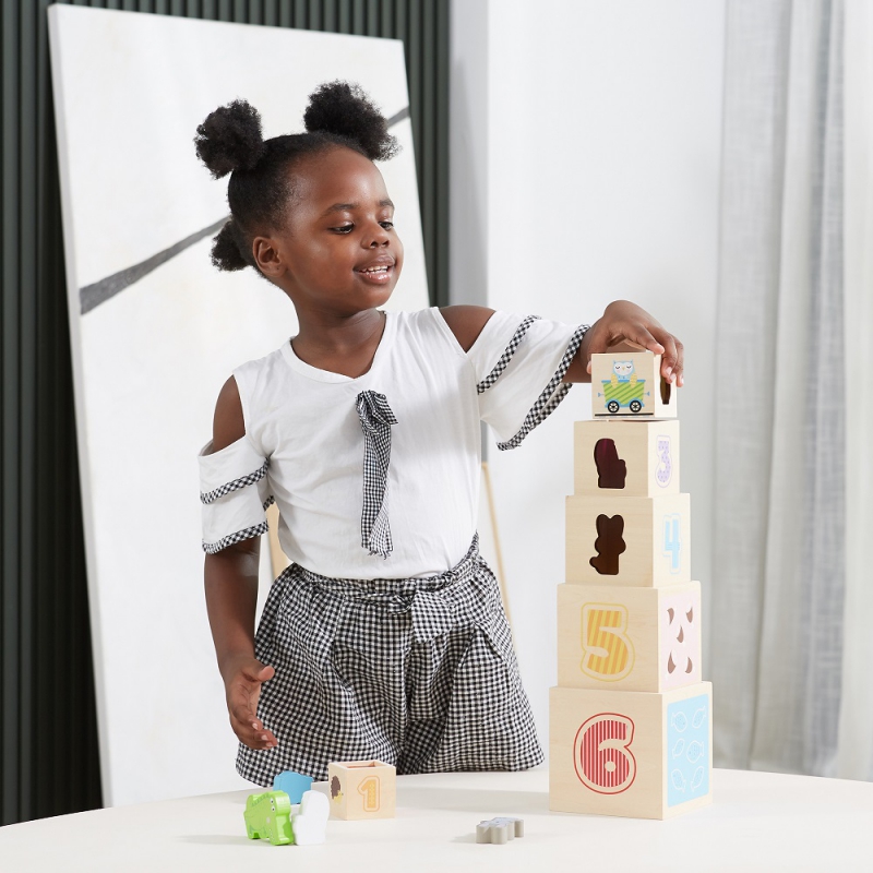 - – mogą wkładać kostki – jedna w drugą, lub układać na sobie,