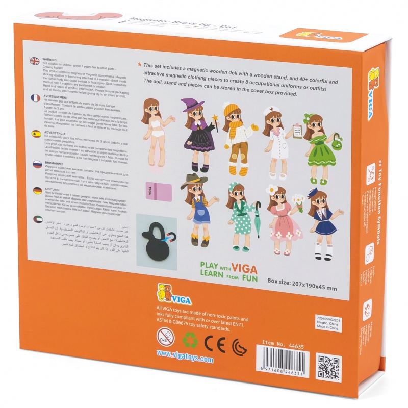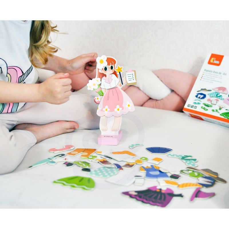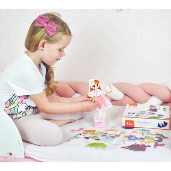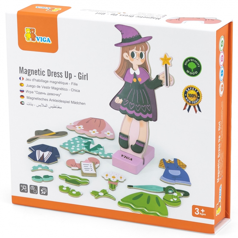 Magnetyczna ubieranka – dziewczynka od firmy Viga to doskonała zabawka dla wszystkich dzieci. Figurkę można dowolnie ubierać w dane zestawy ubranek lub przebierać je w dowolne kombinacje.