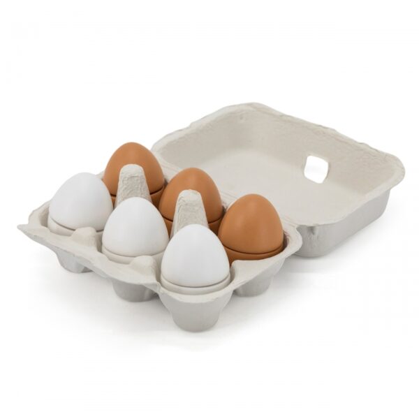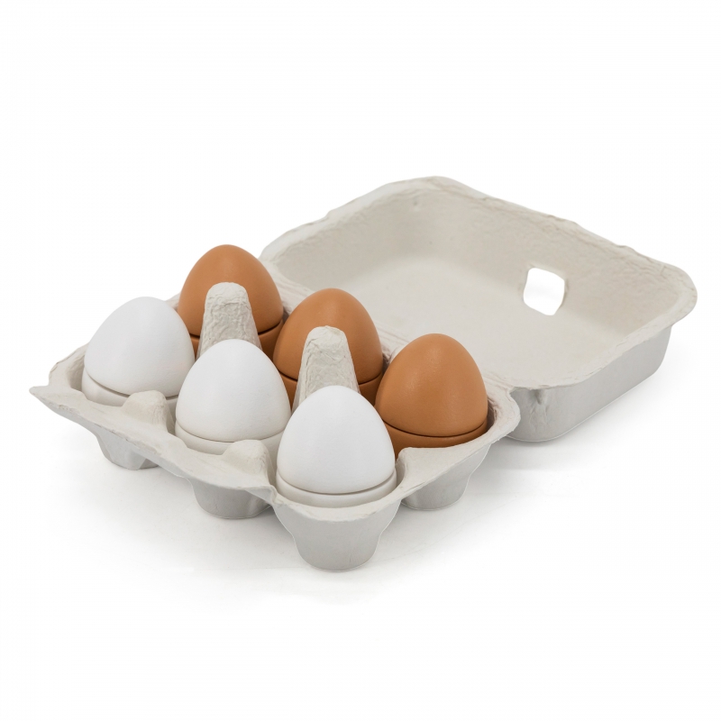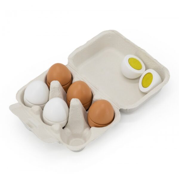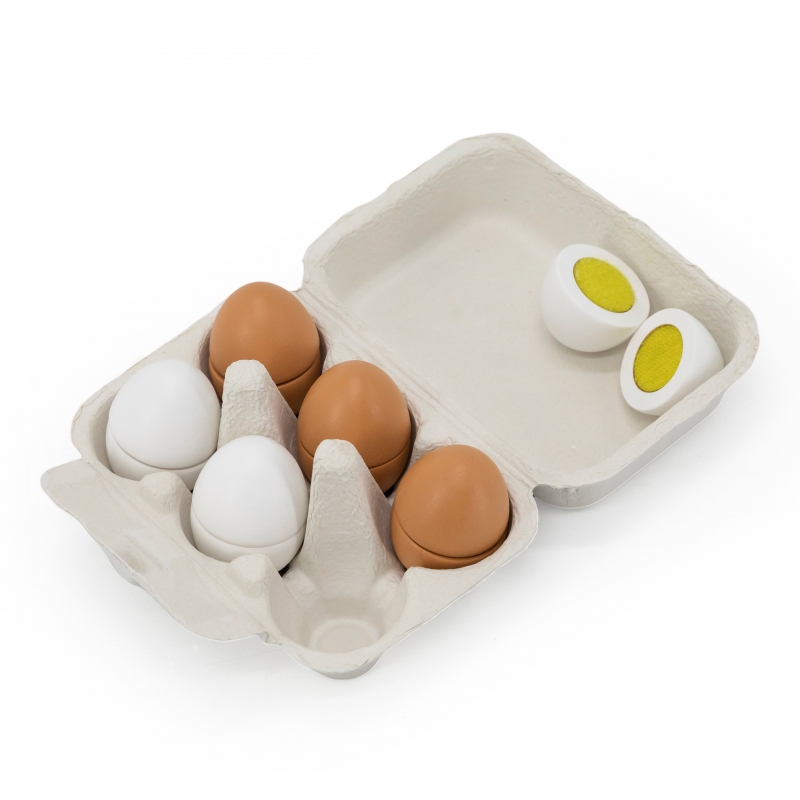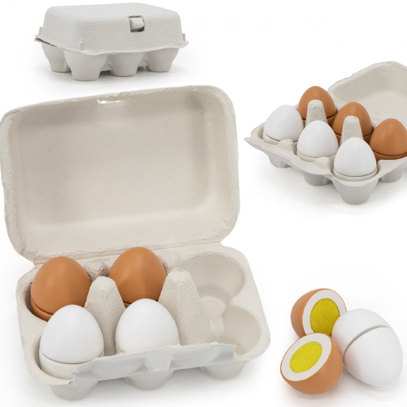 Dzięki jajkom dziecko może naśladować dorosłych i rozwijać zainteresowania np. kulinarne. Możne też bawić się w przygotowywanie posiłków dla innych. Nie ma obawy, że takie jajka się potłuką, czy „zepsują” więc można bawić się nimi bez końca. Zestaw przydatny jako wyposażenie dziecięcego sklepu, czy mini kuchni. Wszystkie jajka z zestawu połączone są ze sobą na rzepy i mogą być pokrojone podczas zabawy w małego kucharza.