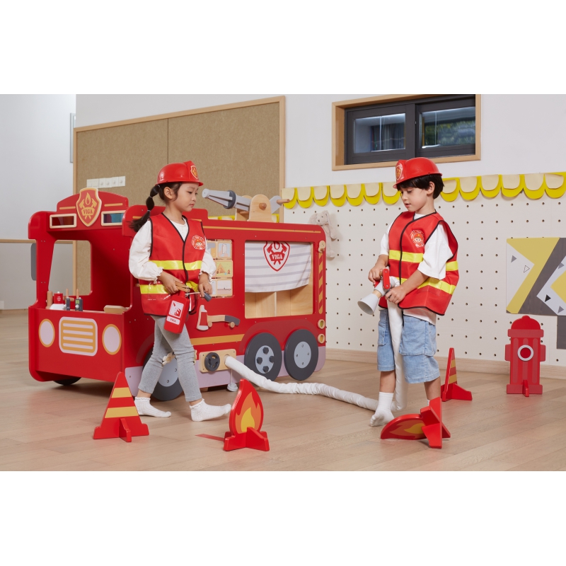 Duży Drewniany Samochód Strażacki od marki VIGA to zabawka, która zapewnia dzieciom bogate doświadczenie w świecie ratownictwa pożarowego. To także wielki wewnętrzny plac zabaw, gdzie dzieci mogą razem wymyślać wiele zabaw. Dzieci mogą wcielać się w rolę odważnych strażaków, gasząc pożary, ratując pluszowe zwierzątka lub nawigując przez skomplikowany labirynt toru ratunkowego. Ta interaktywna zabawka zachęca do aktywnego uczenia się, rozwijając przy tym zdolności motoryczne, logiczne myślenie oraz umiejętności społeczne. Dzięki niej, mali bohaterowie uczą się, jak ważne jest szybkie myślenie i działanie w sytuacjach awaryjnych, a także jak cenne jest posiadanie planu i współpraca w zespole.