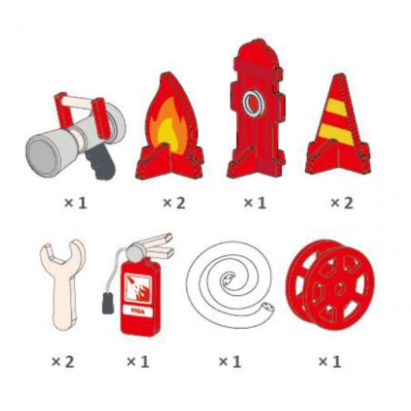 Do zestawu dołączamy jako gratis zestaw akcesoriów widoczny na zdjęciu (kod 44713): 2 stroje strażackie, 2 krótkofalówki, latarkę oraz megafon