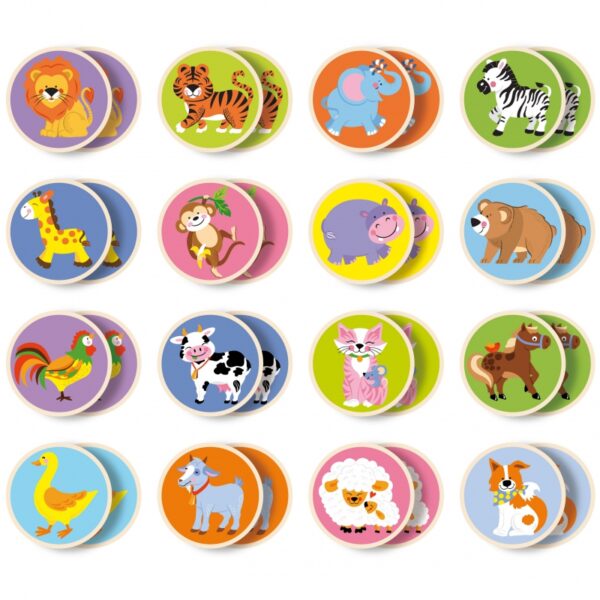 Gra Memory marki Viga to wspaniały pomysł na wspólne spędzenie czasu. Dziecko poprzez zabawę ćwiczy pamięć i koncentrację. Zestaw zawiera aż 16 par kolorowych żetonów z motywami zwierzęcymi. Produkt wykonany z najwyższej jakości materiałów bezpiecznych dla dzieci i środowiska. Podnieś żeton, zapamiętaj obrazek znajdujący się pod nim i znajdź drugi taki sam! Wygrywa osoba, która znajdzie najwięcej par. Dobrej zabawy!