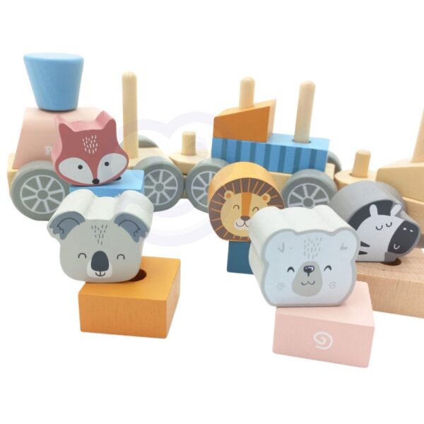 - – zabawka składa się z lokomotywy i kilku wagonów oraz klocków z podobiznami zwierzątek,