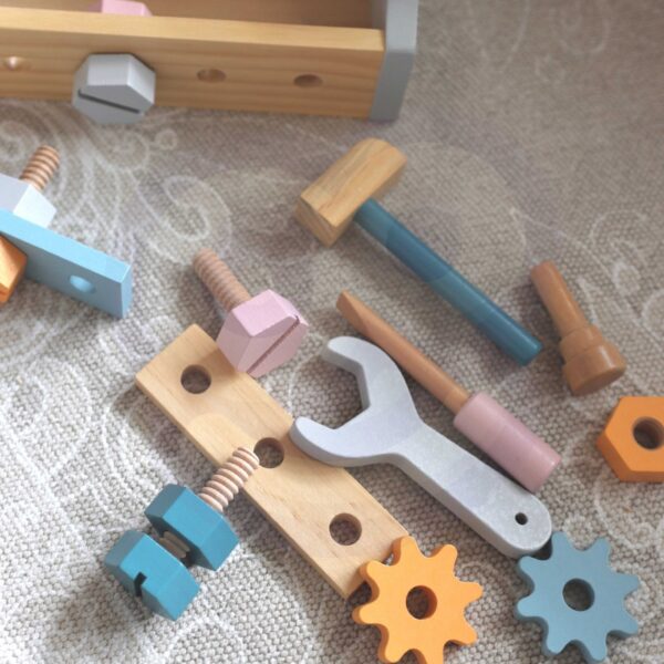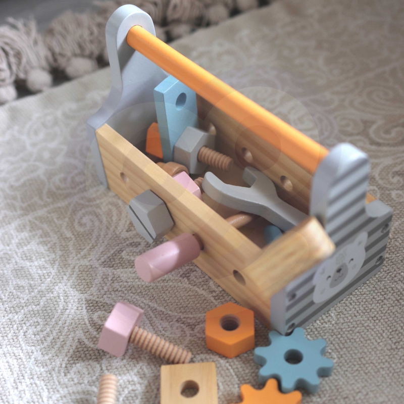 - – poręczna skrzynka z narzędziami zadowoli każdego małego majsterkowicza, który pomaga tacie i dziadkowi w pracach domowych,
