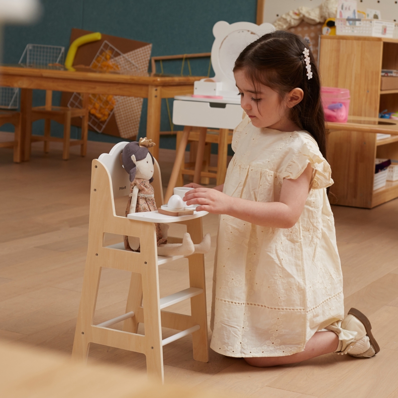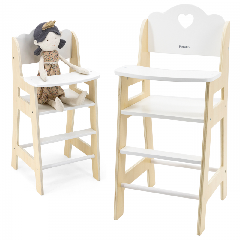 VIGA PolarB Krzesełko do Karmienia dla Lalek Białe Drewniane