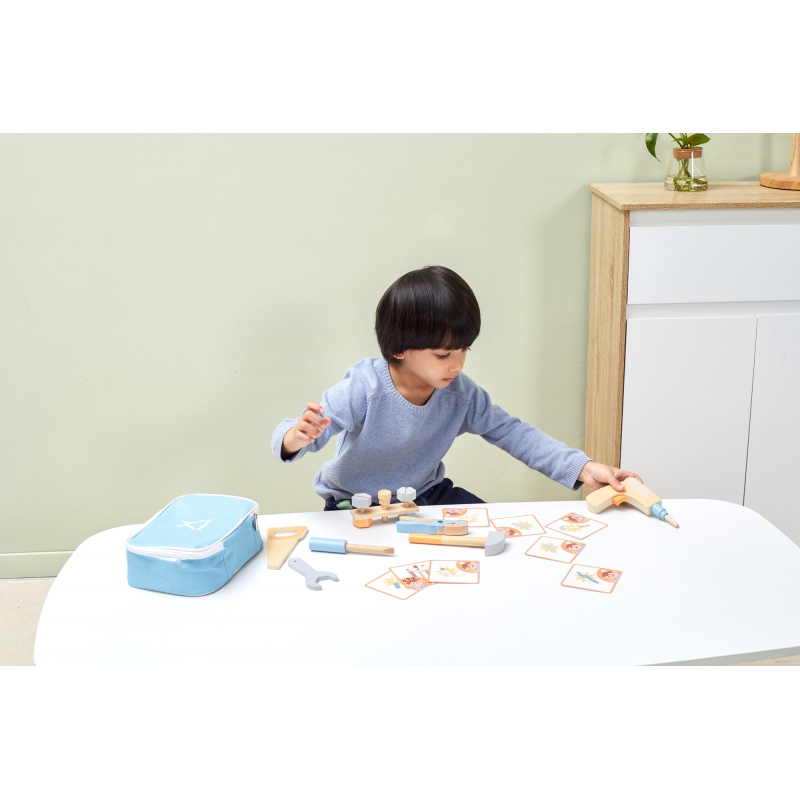 Drewniany Zestaw Narzędzi Viga Toys to świetny pomysł na prezent dla małego majsterkowicza. Od teraz każdy maluch będzie miał wszystko co mu potrzebne do reperowania, skręcania, zbijania i wszelkich prac remontowych. Gwarantuje super zabawę. Produkt zwiększa zdolności poznawcze – dziecko poznaje narzędzia i ich zastosowanie, rozwija wyobraźnie maluszka, poprawia zdolności manualne.