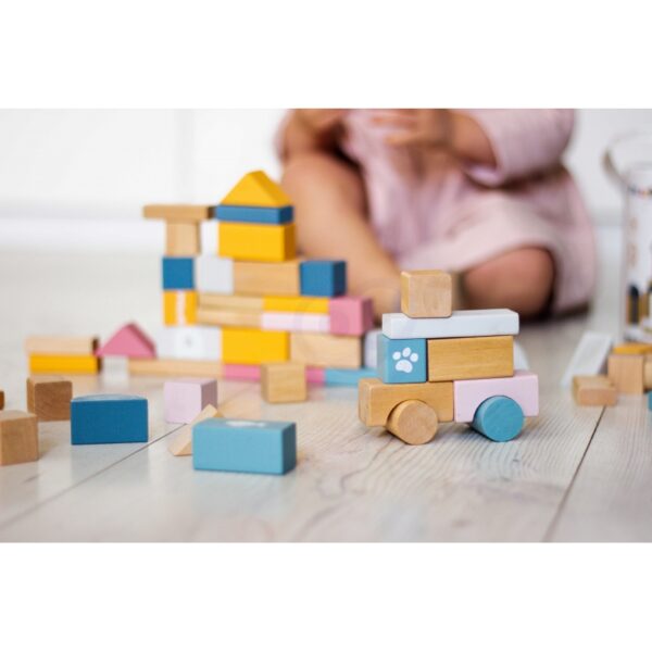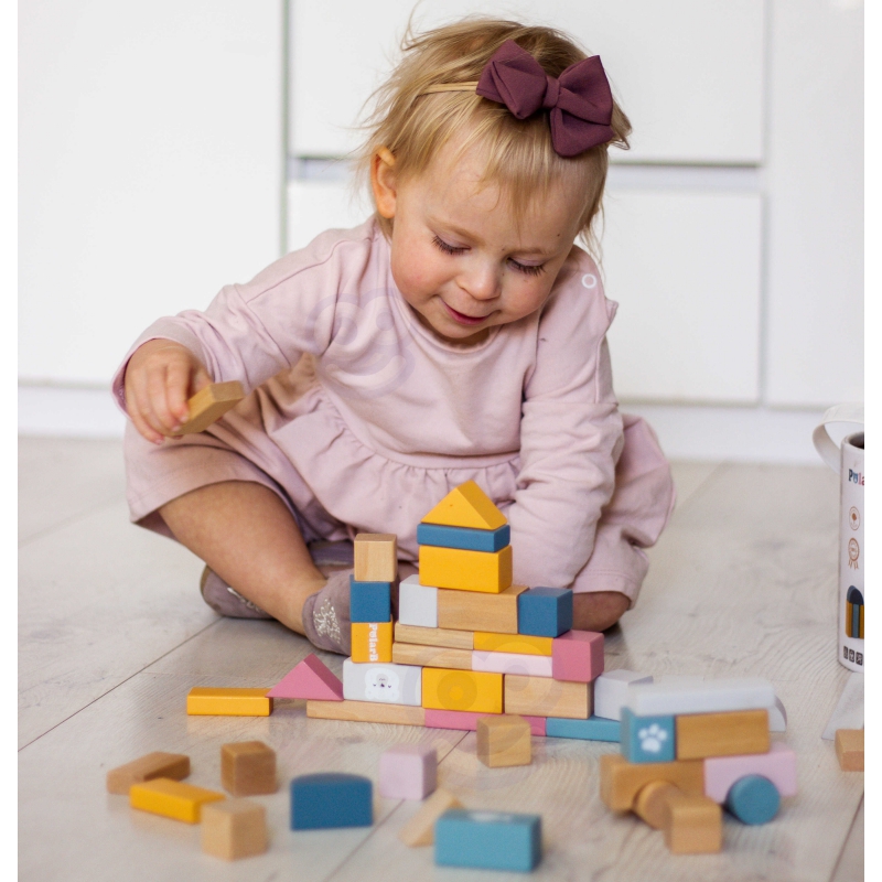Klocki to klasyczne zabawki skutecznie rozwijające intelekt dziecka. Zestaw klocków sensorycznych od marki Viga Toys wspiera zabawę konstrukcyjną, dążenie do celu, kreatywność, rozwiązywanie problemów i podstawy STEM. Klocki wspierają dodatkowo zabawę ekspolaracyjną. Dziecko, które dostaje takie różnorodne klocki, studiuje je, analizuje ze wszystkich stron. Taka zabawa wspiera świadomość przestrzenną, naukę kolorów, kształtów, rozmiarów i funkcjonalności. Dla łatwego przechowania, klocki zostały umieszczone w plastikowym pudełeczku by bezpiecznie czekały na następną lekcję przez zabawę w myśl zasadom Montessori.