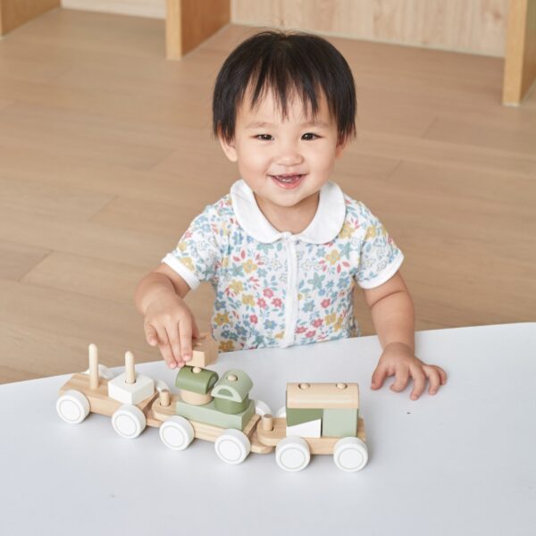 Zielona kolejka marki Viga z kolekcji PolarB to ciekawa zabawka która przynosi wiele frajdy. Składa się z 3 wagonów i 14 klocków o różnych kształtach. Dzięki swojej wyobraźni dzieci mogą tworzyć najróżniejsze kombinacje kształtów i kolorów. Wagoniki można łączyć lub bawić się nimi niezależnie. Układanie klocków rozwija u dzieci umiejętności motoryczne, koordynację ręka- ok oraz zręczność palców.