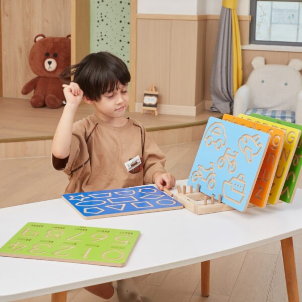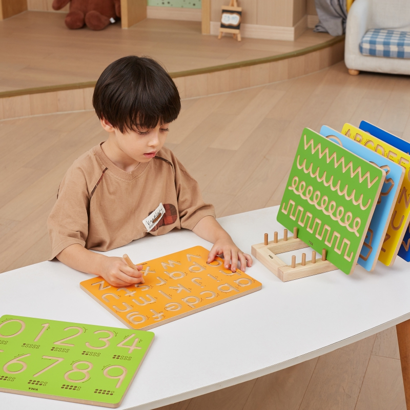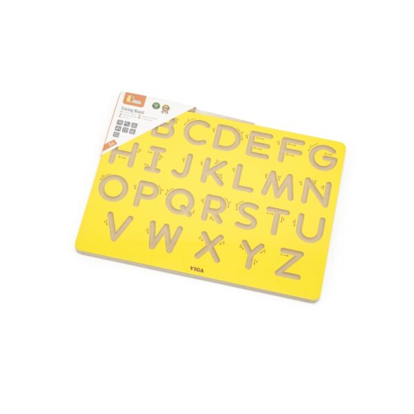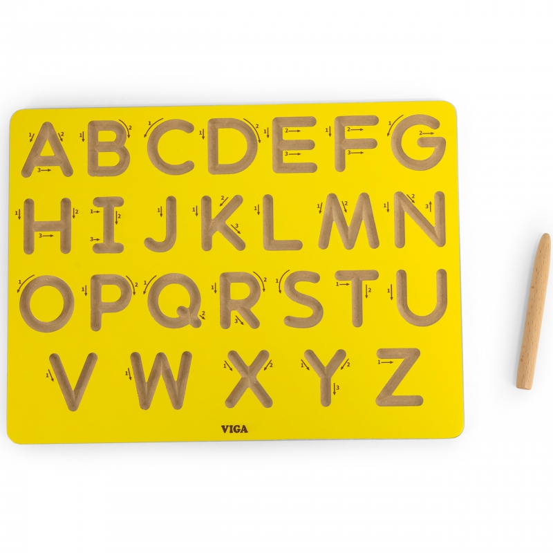 Tablica kreślarska od marki VIGA to idealna propozycja dla dzieci do trenowania rączki przed nauką pisania. Delikatnie wygrawerowane i zakrzywione rowki sprawiają, że idealnie nadaje się dla dzieci do kontrolowania ruchu dłoni i kształtowania pamięci mięśniowej poprzez wielokrotne śledzenie. Każda litera jest oznaczona strzałkami, co pomaga dzieciom w prawidłowej kolejności pisania. Tablica jest dostępna w kompaktowych rozmiarach, dzięki czemu dzieci mogą ją trzymać i używać na stole lub biurku.Dziecko poprzez zabawę uczy się ruchów odpowiedzialnych w przyszłości za rysowanie i pisanie, kształci płynność ruchów oraz ćwiczy koordynację wzrokowo – ruchową.