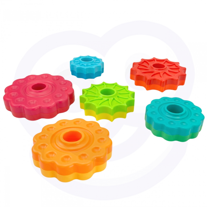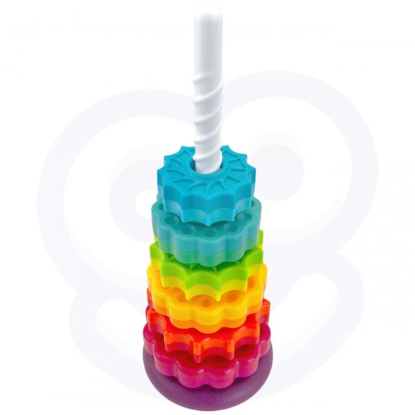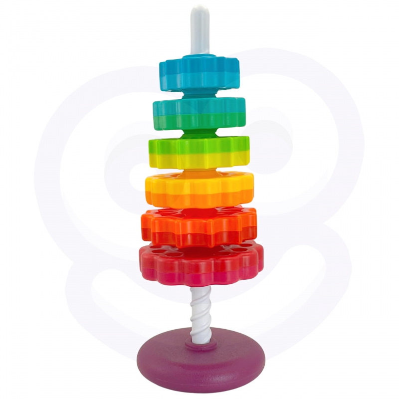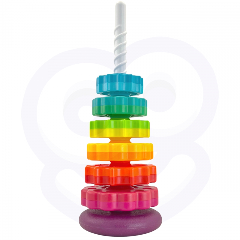 – Zestaw zawiera sześć gwiazdowych krążków, które można układać na sobie, tworząc kolorową i kręcącą się piramidę
