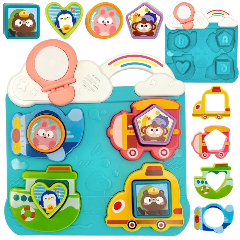 - – Nauka przez zabawę – dzięki różnorodnym kształtom i kolorom, maluch uczy się rozpoznawania i nazywania podstawowych kształtów oraz kolorów