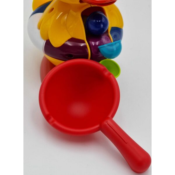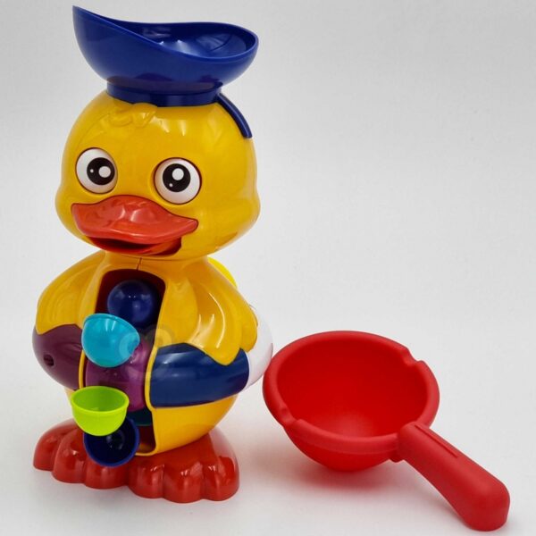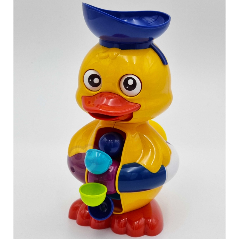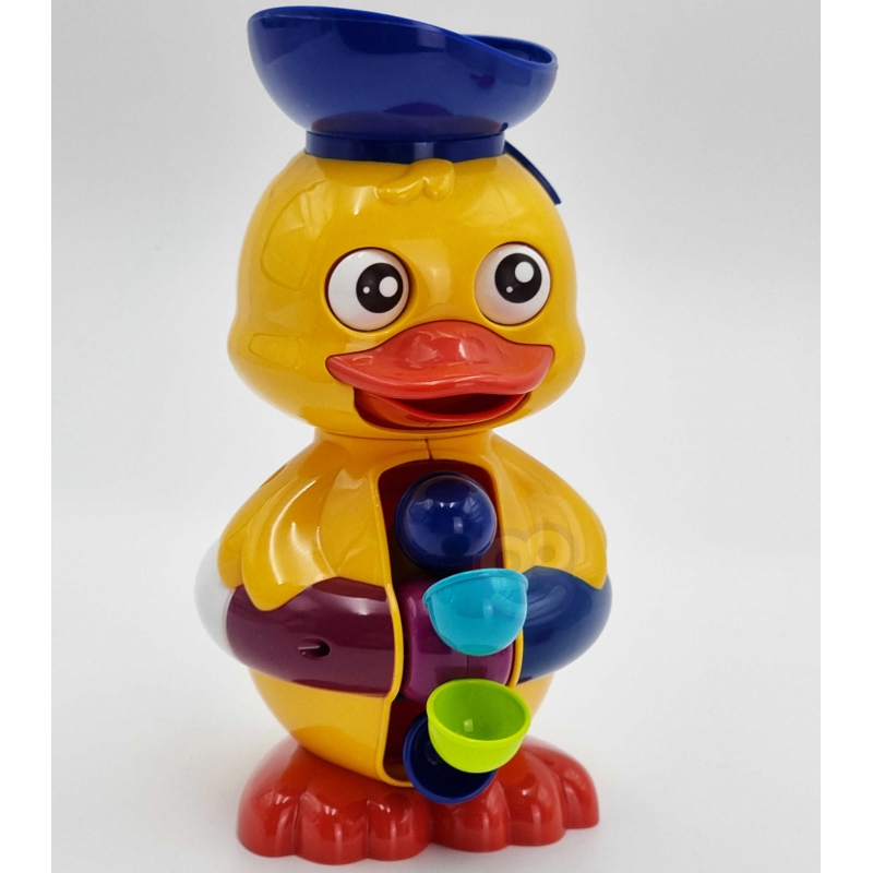 Zabawka wodna Kaczuszka od marki WOOPIE zapewni długie godziny zabawy podczas kąpieli i nie tylko. Dziecko za pomocą łopatki wlewa do czapki kaczuszki wodę. Podczas wlewania wody oczy kaczuszki będą kręcić się w kółko, buzia otworzy się i wleje wodę do kołowrotka umieszczonego na brzuchu. Dodatkowo, z tyłu zabawki są 2 przyssawki, dzięki czemu można przyczepić ją do ściany w łazience lub do wanny. Zabawka nie tylko umili czas podczas kąpieli, ale również rozwinie wyobraźnię, zdolności manualne u dziecka oraz rozwinie świadomość otaczającego go świata, a przede wszystkim pozwoli dziecku skupić się i zająć czymś podczas mycia.