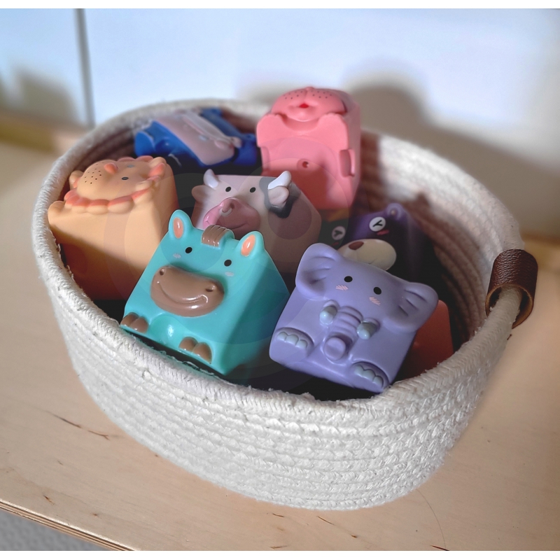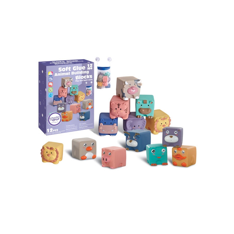 WOOPIE Układanka Klocki Sensoryczne zaciekawią każdego malucha. Dzięki ciekawym kształtom, kolorom i możliwości wydawania dźwięku przy ściśnięciu doskonale stymulują rozwój koordynacji wzrokowo-słuchowej, motorycznej dziecka oraz zmysłu dotyku. Klocki posiadają wypukłe kształty z wizerunkami zwierząt. Klocki są miękkie i przyjemne w dotyku oraz wydają dźwięki podczas ściskania. Dzięki swojej budowie sprawdzą się również doskonale jako gryzak. Przez wizerunki zwierząt dziecko może zapoznać się ze światem przyrody. Produkt w pięknej stonowanej kolorystyce przeznaczony dla dzieci od 12 miesiąca życia.