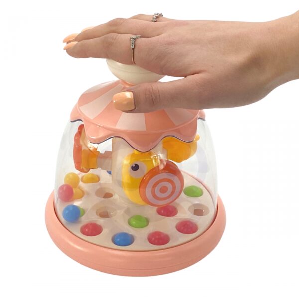 Wesoły i kolorowy bączek ze zwierzątkami od marki Woopie to doskonała propozycja, która gwarantuje maluchom niezapomniane chwile radości i rozwoju. Po naciśnięciu białego przycisku, urocze zwierzątka zaczynają radośnie krążyć a kolorowe kulki wewnątrz zabawki podskakiwać, tworząc efekt miniatury prawdziwej karuzeli. Zabawkę śmiało można wprowadzić do użytku już od 6 miesiąca życia, co czyni ją idealnym prezentem dla najmłodszych. Woopie znane jest z wysokiej jakości i bezpieczeństwa swoich produktów, wiec rodzice mogą mieć pewność, że bączek spełni wszystkie normy bezpieczeństwa.