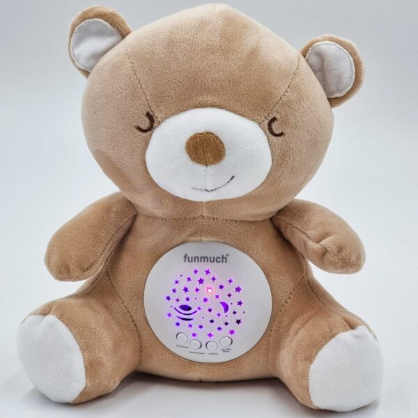 - – efekty świetlne i dźwiękowe – melodie/kołysanki pomagające zasnąć + projektor zmieniający kolory,