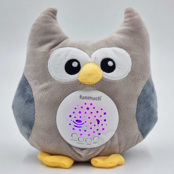 Pluszowy Usypiacz Sówka od marki Woopie, będzie towarzyszem snu twojego maluszka. Maskotka jest idealna dla niemowląt i starszych dzieci, które nie lubią same zasypiać. Sowa będzie idealnym przyjacielem dobrych snów i wybawcą od potworów z szafy. Przytulanka posiada 4 funkcje. Gdy ją włączymy usłyszymy przyjemne melodie, a brzuszek zacznie mienić się różnymi kolorami. Po naciśnięciu przycisku „White Nose” usłyszymy różne szumy czy bicie serduszka. Zabawka posiada, również aż 10 różnych kołysanek oraz możliwość ustawienia 3 poziomów głośności, aby móc dostosować dźwięk do upodobań maluszka i mieć pewność, że nie obudzi się podczas snu. Zabawka jest przystosowana dla niemowląt, dlatego jest wypełniona miękką watą. Dodatkowo pluszaka można bezpiecznie oraz łatwo czyścić, wyjmując mechanizm i łatwo go potem montując. Dzięki temu starsze dziecko będzie mogło używać zabawki jako maskotki bez mechanizmu. Każde dziecko zakocha się w tej sówce!