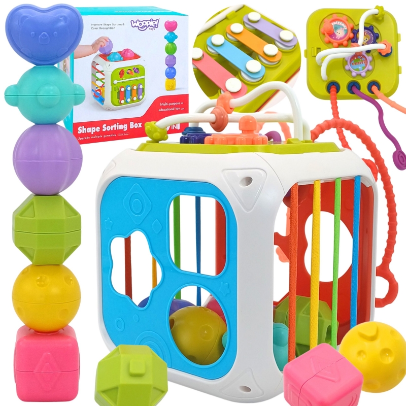Kostka edukacyjna od marki WOOPIE to idealny prezent dla twojego dziecka, jeśli chcesz aby poznawało świat poprzez zabawę – każdy dźwięk, kształt i tekstura staje się dla niego kolejną fascynującą przygodą. Kostka dla niemowląt to innowacyjna zabawka edukacyjna, która została stworzona z myślą o wszechstronnym rozwoju malucha. Dzięki swojej różnorodności i bogactwu funkcji, kostka ta staje się nie tylko źródłem radości, ale również narzędziem do nauki, które wspomaga rozwój umiejętności poznawczych i motorycznych dziecka. Zabawka łączy w sobie różne elementy, które stymulują zmysły dziecka i pomagają mu rozwijać się w sposób naturalny i przyjemny. Wyjmowany panel z mini-ksylofonem, kolorowe wstążki, wirujące zębatki oraz labirynt z koralikami – to tylko niektóre z atrakcji, które czekają na Twojego malucha. Z każdą chwilą spędzoną na zabawie, dziecko uczy się rozpoznawania kształtów, kolorów, dźwięków i rozwija swoją koordynację wzrokowo-ruchową. Kostka sorter to nie tylko zabawka – to klucz do wczesnej edukacji, który w fascynujący sposób wprowadza dziecko w świat nauki. Dzięki jej wszechstronności, stanowi doskonały wybór na prezent dla niemowląt, dostarczając im radości i rozwijając ich umiejętności. Idealna na każdą okazję, od urodzin po święta
