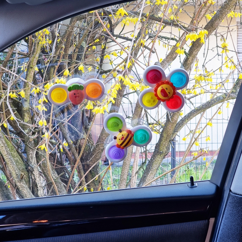 Zestaw Spinerów od marki WOOPIE zrobi na dziecku duże wrażenie. W zestawie znajdują się 3 sztuki spinerów: marchewka, pszczółka i słoneczko. Spinery można zabrać wszędzie i przyczepić wszędzie dzięki gumowym przyssawkom. Można przyczepić spinera zarówno do szybu w czasie podróży oraz do wanny w czasie kąpieli (zabawkę można moczyć). Łożyska spinerów gwarantują długotrwały obrót. Zabawki posiadają gumowe elementy do przyciskania co rozwinie zmysły dziecka oraz zadziała odstresowująco. Zabawa ćwiczy zwinność roczek u dziecka oraz poprawia koordynację ręka-oko.
