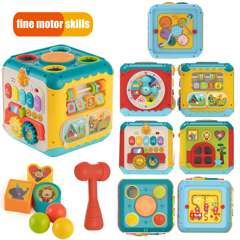 Skrzynka Aktywności 6w1 od marki WOOPIE to zabawka, która oferuje dziecku wiele różnorodnych i ciekawych zajęć. Każda ścianka skrzynki ma inną funkcję, dzięki czemu zabawka jest uniwersalna i dostosowana do różnych zainteresowań i etapów rozwojowych dziecka. Skrzynka zawiera pianinko, na którym dziecko może bawić się klawiszami, które wydają przyjazne dźwięki, wbijak przy którym za pomocą młoteczka dziecko wbija kolorowe piłeczki do środka skrzynki – młotek jak i piłeczki znajdują się w zestawie. Każda aktywność jest starannie zaprojektowana, aby wspierać różne umiejętności, takie jak koordynacja oko-ręka, rozpoznawanie kształtów i kolorów, rozwój słuchu i wyrażanie kreatywności. Niewielkie rozmiary Skrzynki Aktywności sprawiają, że jest ona łatwo przenośna, a jednocześnie pełna niekończącej się zabawy dla małych odkrywców, którzy chcą uczyć się poprzez zabawę.