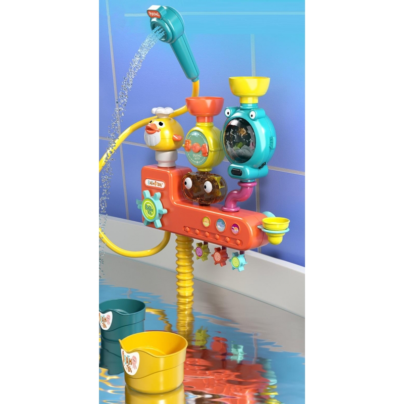 Zabawka Wodna Kaczuszka od marki WOOPIE zapewni ciekawy czas dla dziecka podczas kąpieli. Dziecko za pomocą kubeczków wlewa do lejków wodę, która uruchamia kołowrotki a te zaczynają się kręcić rozpraszając wodę. Zabawka posiada także mini słuchawkę prysznicową, którą dziecko może uruchomić poprzez naciśnięcie kaczuszki. Kubeczek posiada funkcję przelewowego, który skupia uwagę oraz rozwija zmysły malucha. Aby woda była dostarczana na bieżąco, wystarczy dolną rurkę zabawki zanurzyć w wannie. Dodatkowym atutem jest to, że posiada przyssawki, dzięki czemu można przyczepić ja do ściany w łazience lub do wanny. Zabawka nie tylko umili czas podczas kąpieli, ale również rozwinie wyobraźnię u dziecka oraz rozwinie świadomość otaczającego go świata, a przede wszystkim pozwoli skoncentrować dziecko i zająć podczas mycia.
