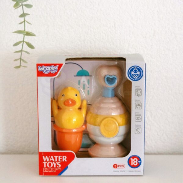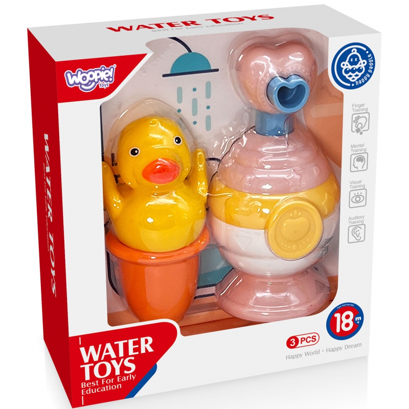 Zestaw Zabawek do Kąpieli od marki WOOPIE to nie tylko zabawka, ale i sposób na zamienienie codziennej kąpieli w prawdziwą przygodę! Zestaw składa się z: uroczej kaczuszce, ślicznemu dozownikowi mydła i kolorowemu kubeczkowi.Ta innowacyjna mydelniczka to coś więcej niż zwykły dozownik mydła! Wyposażona w funkcję spieniania, zamienia zwykłe mydło w delikatną, puszystą pianę, która nie tylko świetnie myje, ale też tworzy mnóstwo zabawy dla malucha. Kaczuszka beztrosko unosząca się na wodzie zachęci każde dziecko do kreatywnej zabawy, a kubeczek przelewowy to kolejny magiczny element zestawu, który pozwala dzieciom na niekończącą się zabawę z wodą – maluch może przelewać wodę z jednego miejsca do drugiego, obserwując, jak zmienia się jej przepływ.