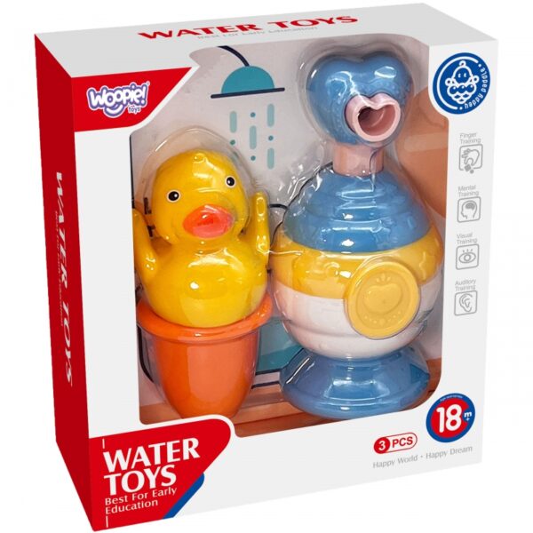 Zestaw Zabawek do Kąpieli od marki WOOPIE to nie tylko zabawka, ale i sposób na zamienienie codziennej kąpieli w prawdziwą przygodę! Zestaw składa się z: uroczej kaczuszce, ślicznemu dozownikowi mydła i kolorowemu kubeczkowi.Ta innowacyjna mydelniczka to coś więcej niż zwykły dozownik mydła! Wyposażona w funkcję spieniania, zamienia zwykłe mydło w delikatną, puszystą pianę, która nie tylko świetnie myje, ale też tworzy mnóstwo zabawy dla malucha. Kaczuszka beztrosko unosząca się na wodzie zachęci każde dziecko do kreatywnej zabawy, a kubeczek przelewowy to kolejny magiczny element zestawu, który pozwala dzieciom na niekończącą się zabawę z wodą – maluch może przelewać wodę z jednego miejsca do drugiego, obserwując, jak zmienia się jej przepływ.
