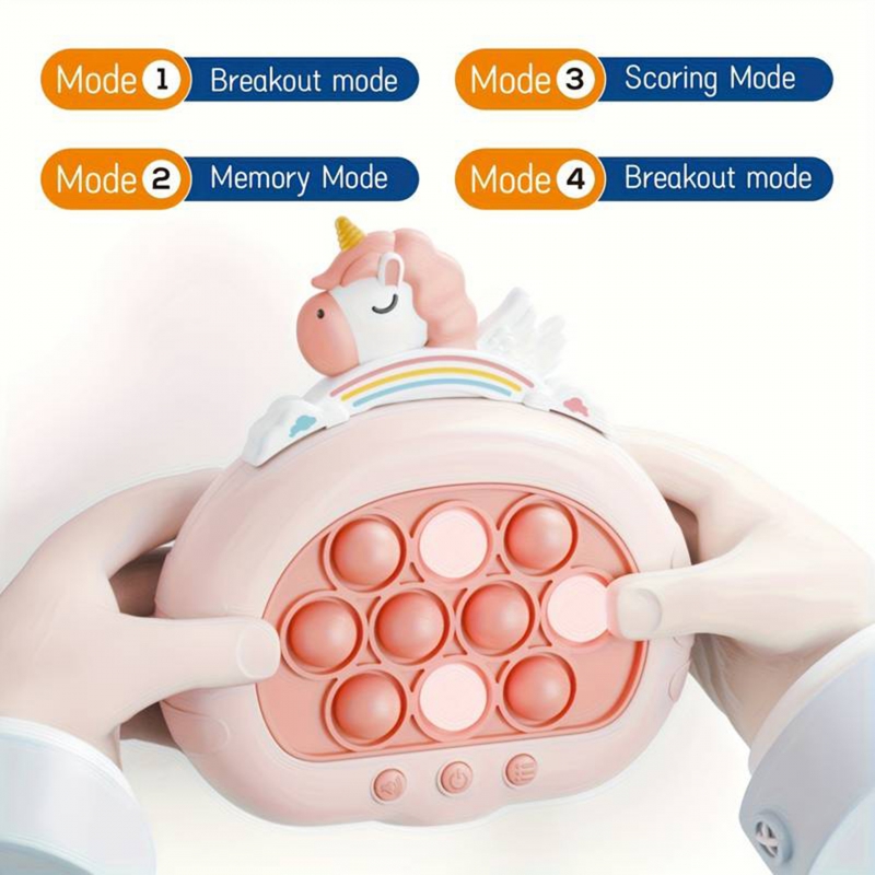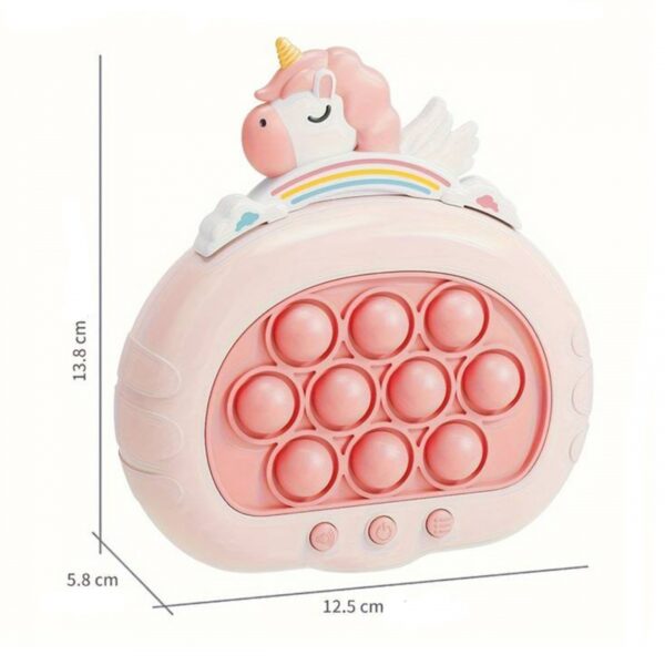 Gra POP IT Jednorożec interaktywna,interaktywne,zręcznościowa,gra,gry,woopie,antystresowa,antystresowe,game,zręcznościowe,wciskanieto zabawka antystresowa, która sprawdzi się już dla najmłodszych. Gra wydaje radosne dźwięki, które zachęcają dzieci do zabawy i urozmaicają rozgrywkę. Zabawka jest niewielka więc, sprawia, że możemy zabrać ją ze sobą. Pop It sprawia frajdę dzieciom oraz dorosłym, którzy chętnie po nią sięgają. Rozwija umysł, zdolności manualne, koordynację wzrokowo-ruchową oraz trenuje spostrzegawczość i pomaga w walce ze stresem.