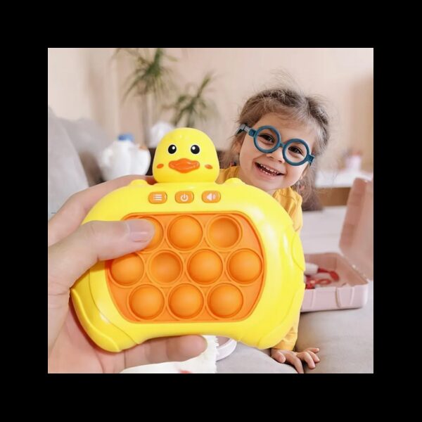 Gra POP IT Kaczka to zabawka antystresowa, która sprawdzi się już dla najmłodszych. Gra wydaje radosne dźwięki, które zachęcają dzieci do zabawy i urozmaicają rozgrywkę. Zabawka jest niewielka więc, sprawia, że możemy zabrać ją ze sobą. Pop It sprawia frajdę dzieciom oraz dorosłym, którzy chętnie po nią sięgają. Rozwija umysł, zdolności manualne, koordynację wzrokowo-ruchową oraz trenuje spostrzegawczość i pomaga w walce ze stresem.