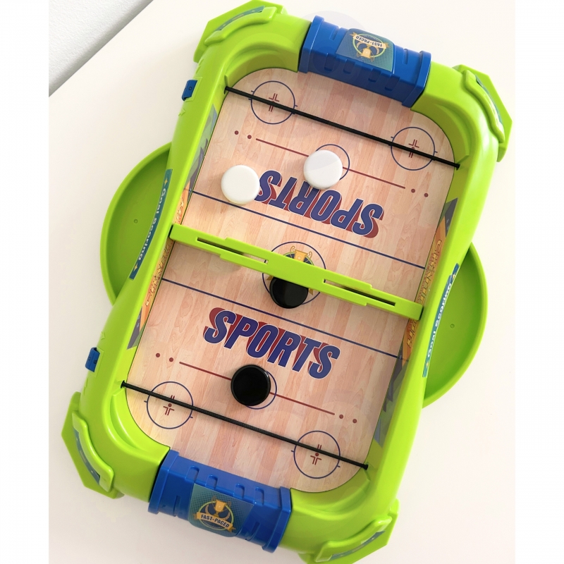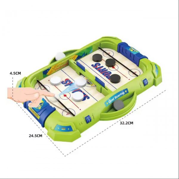 Na obydwu połowach planszy, rozciągnięte są gumeczki do wystrzeliwania krążków. Na środku umieszczona jest ścianka, z małym otworem, aby rozgrywka mogła się rozpocząć. Po bokach zamieszczone są dwie półeczki, w które można wkładać wygrane krążki. Każdy z graczy otrzymuje po 3 pionki – teraz wystarczy naciągnąć gumeczkę z pionkiem i strzelić na pole przeciwnika! Celem gry – jak w hokeju – jest zdobycie większej ilości bramek niż przeciwnik. Gracz, który trafi swoim zawodnikiem do bramki po przeciwnej stronie boiska mniejszą ilość razy – przegrywa.