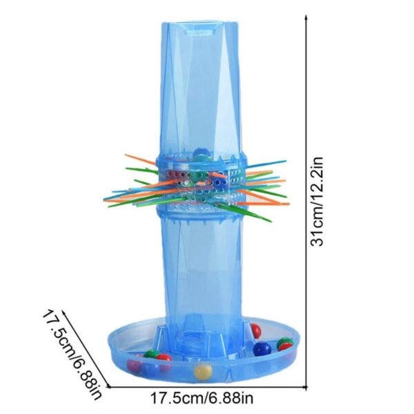 - – Wyposażona w przezroczysty cylinder, kolorowe kulki i patyczki.