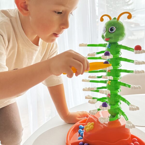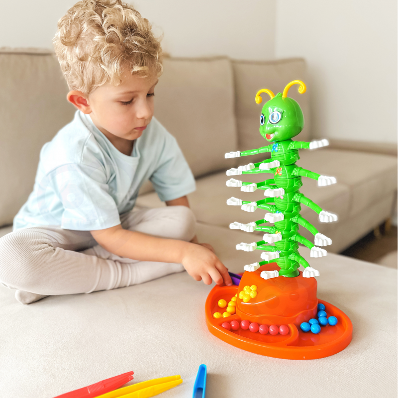 Gra Zręcznościowa Tańcząca Stonoga od marki WOOPIE to idealne rozwiązanie na rodzinne wieczory, czy spotkania najmłodszych. Zadaniem każdego gracza jest umieszczenie wszystkich swoich kuleczek na łapkach gąsienicy – i to w jak najkrótszym czasie.