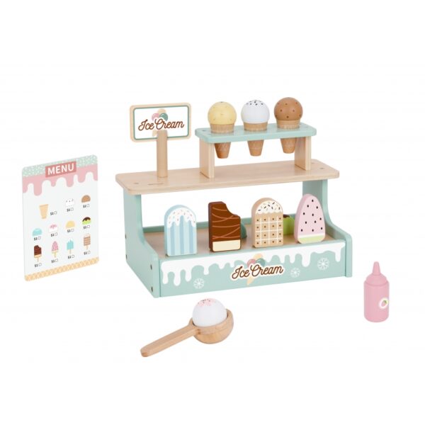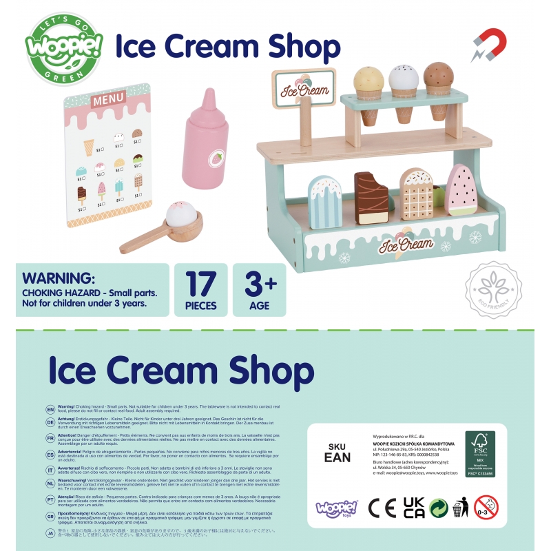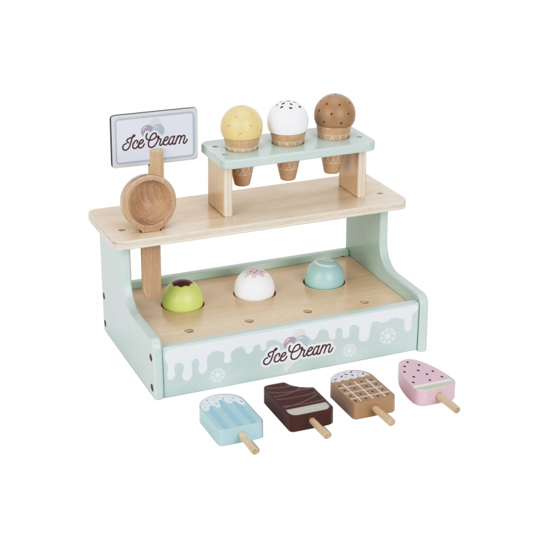 Drewniany Stragan z Lodami od marki Tooky Toy to doskonała propozycja dla dzieci, które uwielbiają kreatywną zabawę. Zestaw ten nie tylko doskonale sprawdzi się w zabawie w sklep, gdzie dzieci mogą udawać sprzedawców lodów, ale również stanowi fantastyczne akcesoria do wyposażenia dziecięcej kuchni. Jego świetna jakość wykonania, urocza kolorystyka i praktyczność gwarantują, że dzieci będą czerpać radość z wielu godzin kreatywnej zabawy. Zestaw zawiera drewniany stojak na lody w pięknej pastelowej kolorystyce, lody na patyku, wafelki oraz gałki lodów łączone za pomocą magnesu, łyżkę do lodów oraz menu.