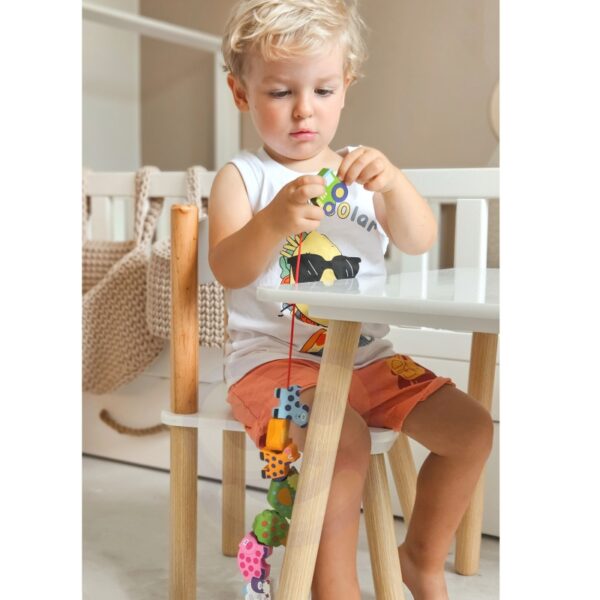 - – wszystkie koraliki wykonane zostały z naturalnego drewna – zabawka ekologiczna